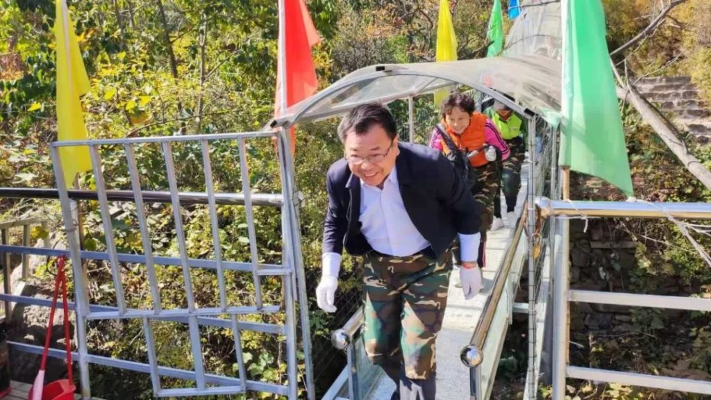 来自市各乡(镇)、办事处、市直各单位和社会各界的登山健身爱好者云集山下,参与轿顶山“三山同登”活动,看到登山人群中有组织有序的从轿顶山景区游客中心—轿顶仙洞北广场–地质博物馆–九品登山步道–华盖石–玉皇大帝–轿顶山龙脉长城–龙碑广场–轿顶仙洞(终点)健步行走,快乐攀登,有自发前来的各地群众、五湖四海的游客,有老人有孩子,人们三五成群一路勇于攀登,其乐融融。活动全天,轿顶山游人如织,参与健身休闲的游客络绎不绝。
