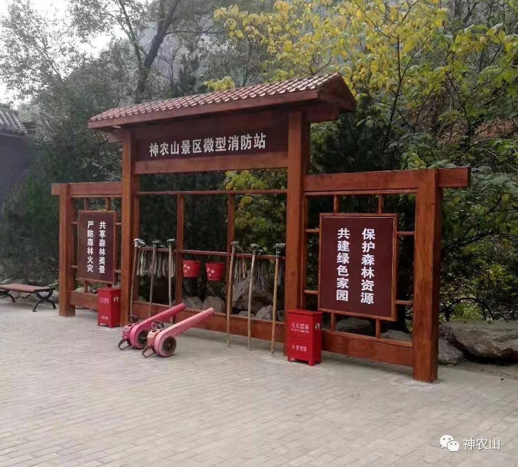 目前我市已进入森林防火紧要时期,省、市气象专家预测,今冬明春我市降水偏少,天干物燥,森林防火形势严峻。为贯彻省、市森林防火工作会议要求和市政府有关领导的指示精神,确保森林防火工作各项制度和措施落实到位,保障全市森林资源和人民生命财产安全。 神农山景区设立“微型消防站”,准备防火工具,以防有火灾发生时第一时间从源头消灭火源。