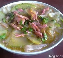 羊骨头一起投入大锅里熬汤,再将切成块的新鲜羊肉与清洗干净的羊杂一起投入汤锅中煮。煮熟后捞起来沥干,然后切成薄片放入滚开水里一氽,放入汤碗中,冲入滚烫雪白的羊汤,撒上碧绿的葱花,一碗热气腾腾、香气四溢的羊肉汤就做成了。