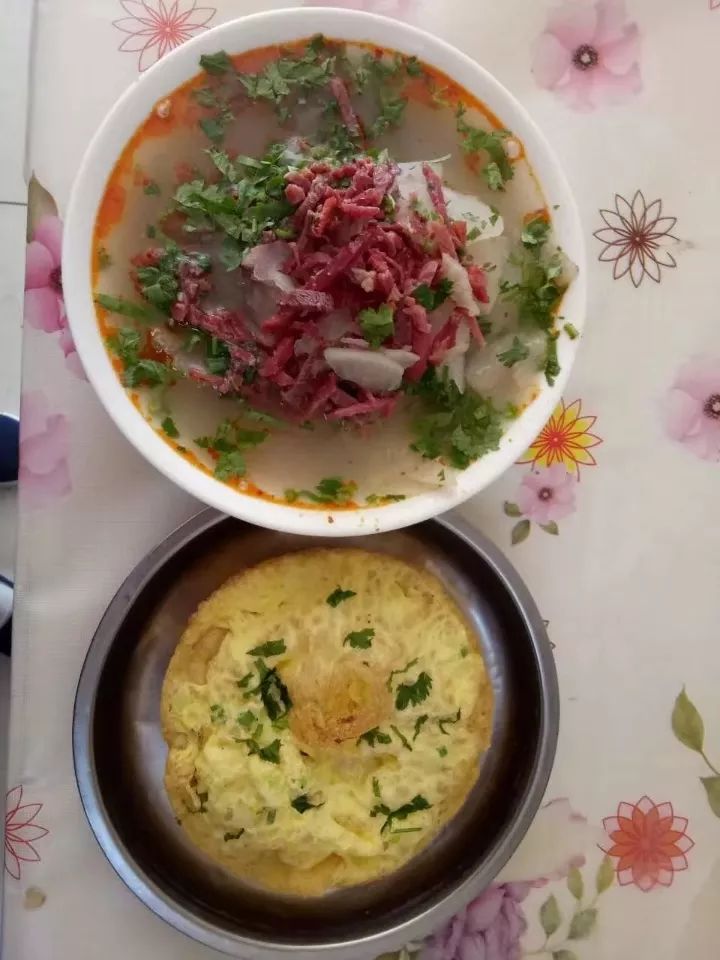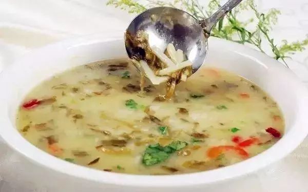 记忆中有种妈妈的味道,叫浆水菜不烂汤,浆水菜也就是酸菜,“酸菜不烂汤”,是用酸菜熬制的面疙瘩汤,放十几颗豆芽,薄薄地切几块豆腐,再放几根粉条,出锅时用红过的油放入葱花,“呲”的一声香气便溢满整个房间……在吃甜饭、软饭等甜食时配上一碗酸菜不烂汤就一点也不会觉的腻了,就俩字“地道”!