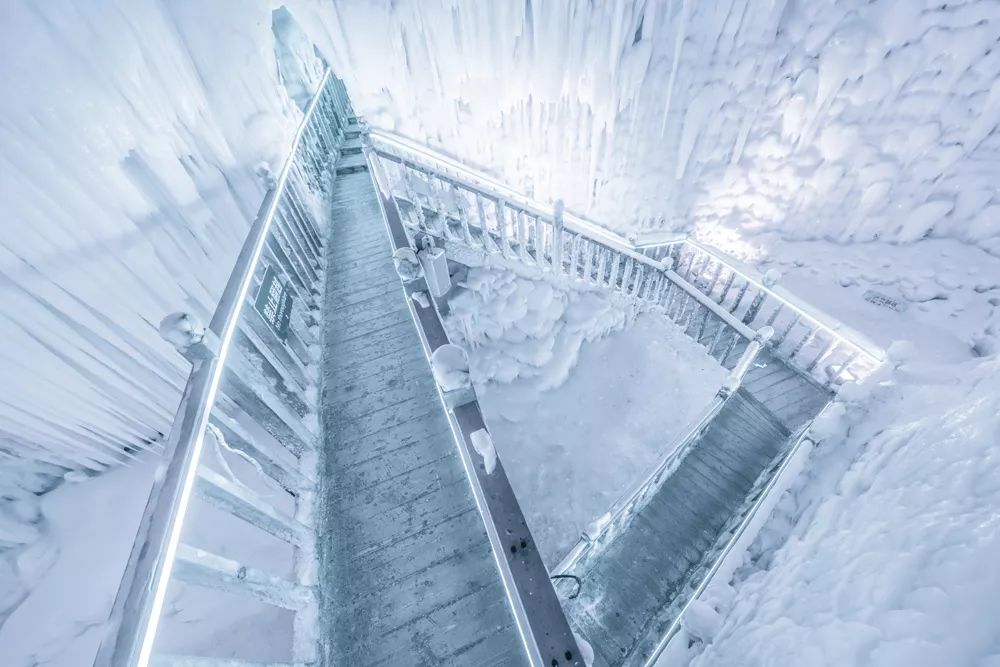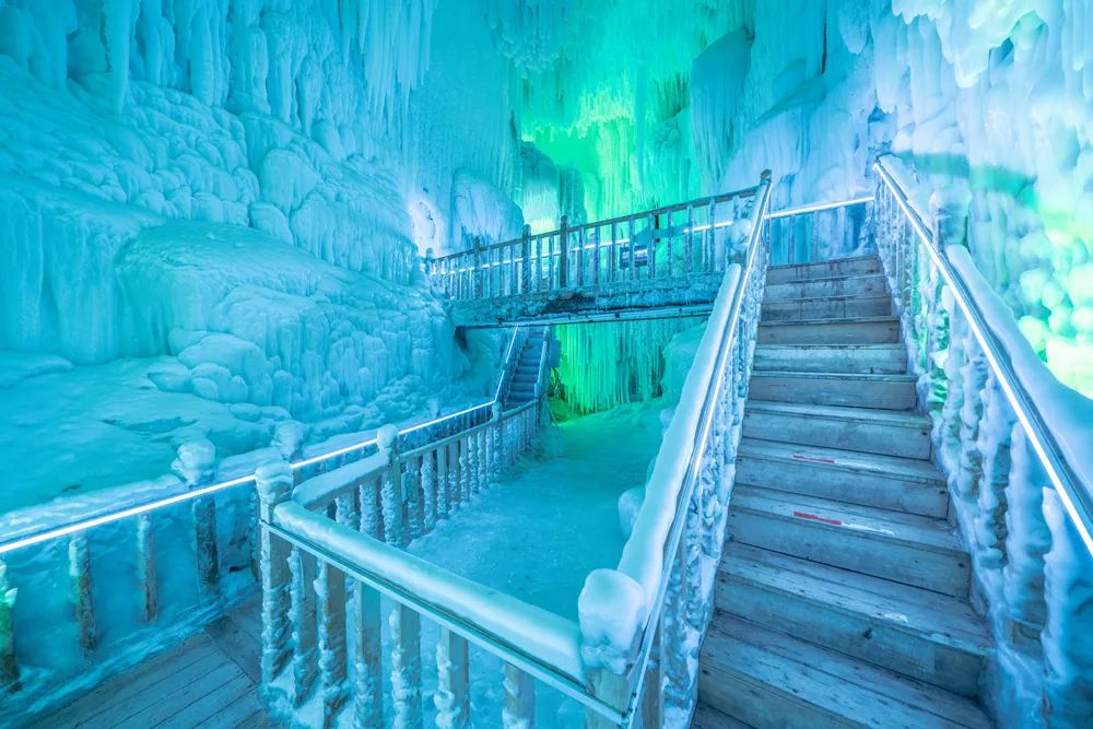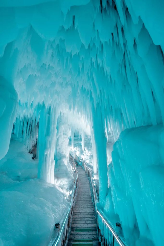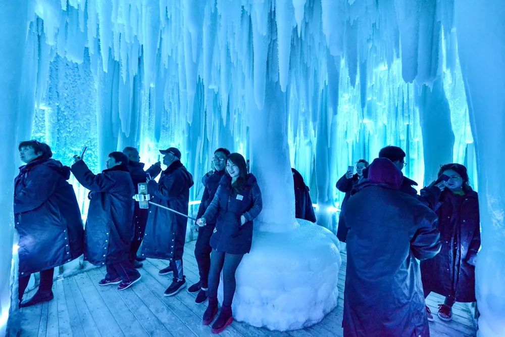 洞壁上的冰泛着如玉般莹润的光泽,在灯光的映射下,营造出一个本应只属于童话中的世界…
