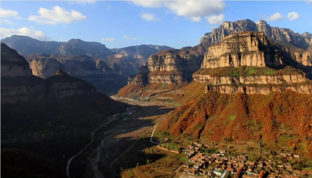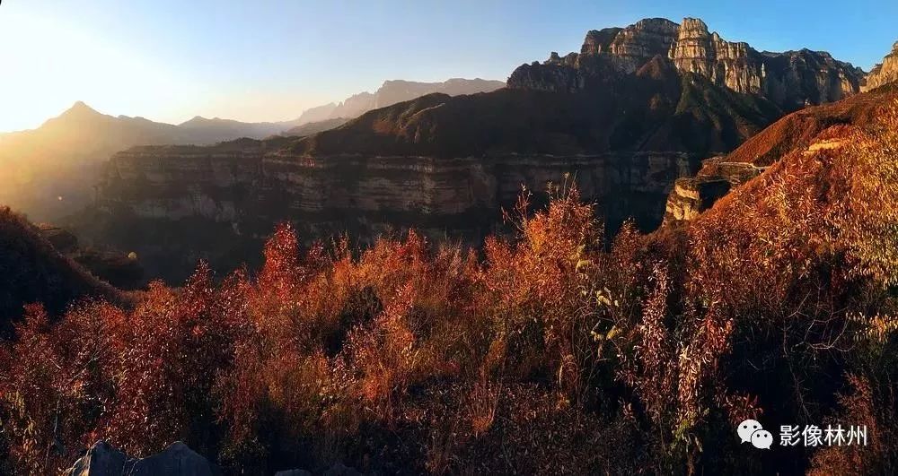 丛山迭嶂,绝壁断崖,夏天里被郁郁丛林遮掩住的山崖渐渐的裸露出了全貌,赤色的断崖,阳刚劲露,在色彩斑斓的秋叶映衬下也增添了一丝温柔与柔美。而与太行大峡谷两侧山崖的硬朗不同,峡谷之中的露水河充满了柔美秀气,多少年来它安静地流淌其中,见证了大峡谷的岁月变迁。