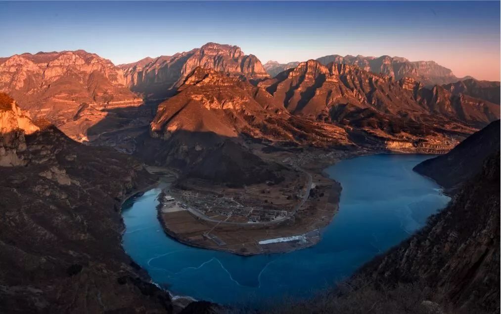 湛蓝通透的天空,阳光毫无障碍的洒落在山峦之间,天地无比清澈高远。这样的初冬季节格外纯净,没有杂质,斑斓的山、湛蓝的天、碧绿的水在太行大峡谷初冬的阳光下,带着最真实、最本质的色彩,展现出一幅别具魅力的美景。