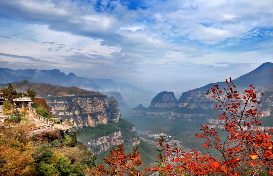 沐浴在温暖的阳光下,行走在太行大峡谷之中,映入眼眸的是淙淙的溪水和延绵起伏的山脉。初冬的季节,两侧山崖间所剩不多色彩各异的秋叶还屹立枝头,在太行大峡谷装点着最后的色彩。