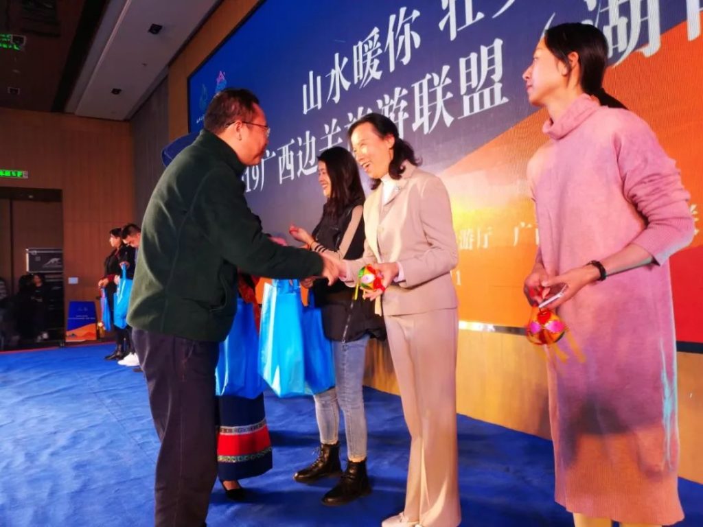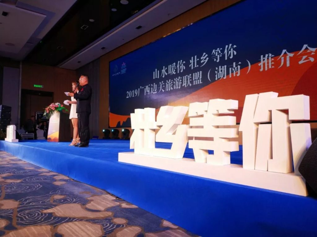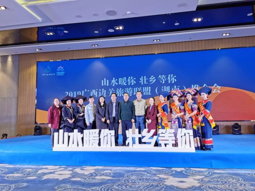 11月19日下午,由广西壮族自治区文化和旅游厅、广西边关旅游联盟联合主办的2019广西边关旅游联盟“冬游广西”推介会在湖南长沙隆重举行。长沙市文化旅游广电局副调研员湛宇燕、防城港市文化广电体育和旅游局副局长蓝京文、崇左市文化和旅游局副局长赵小葵、百色市文化广电和旅游局副局长刘鉴等领导以及广西、湖南旅行商同仁、长沙市自驾游协会以及各大媒体代表参加本次活动。