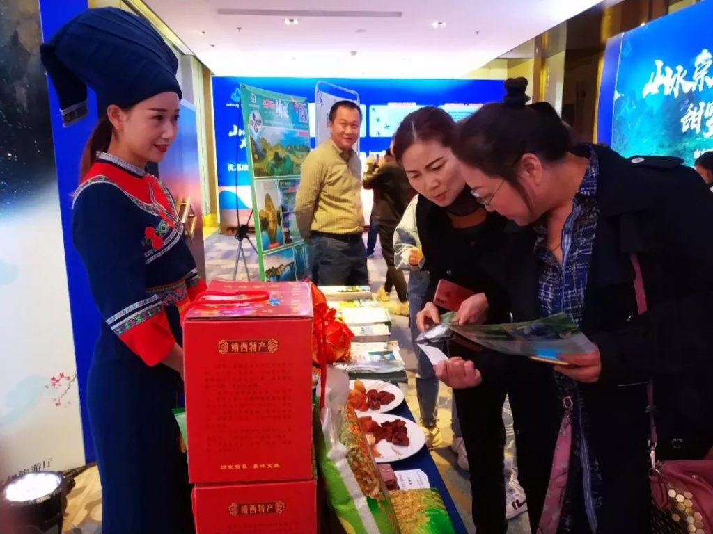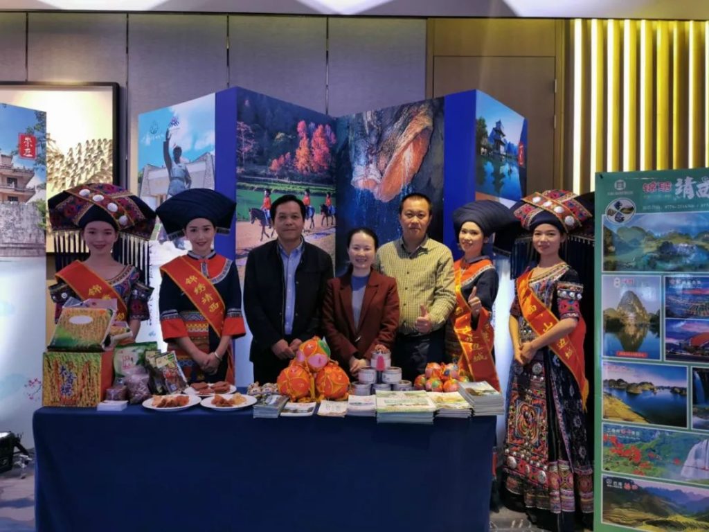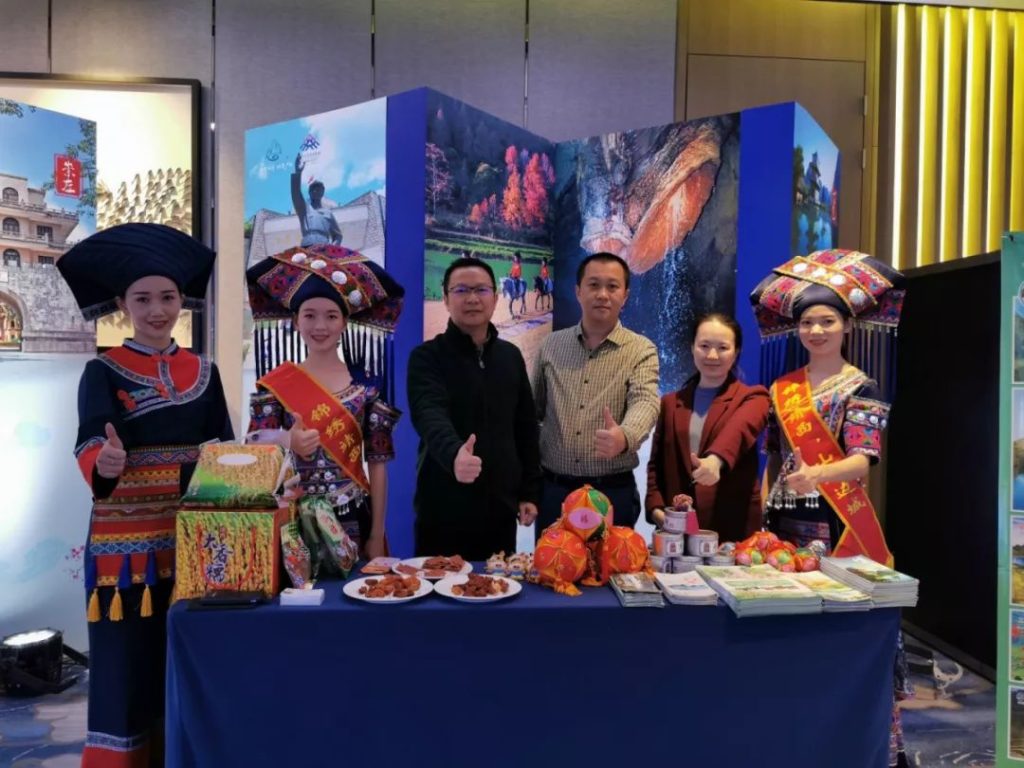 百色市文化广电和旅游局副局长刘鉴(中)率领百色相关旅游单位、企业参加本次活动