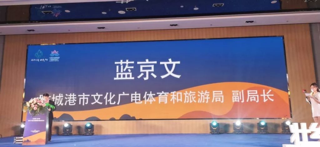 防城港市文化广电体育和旅游局副局长蓝京文在会上推介广西边关旅游资源