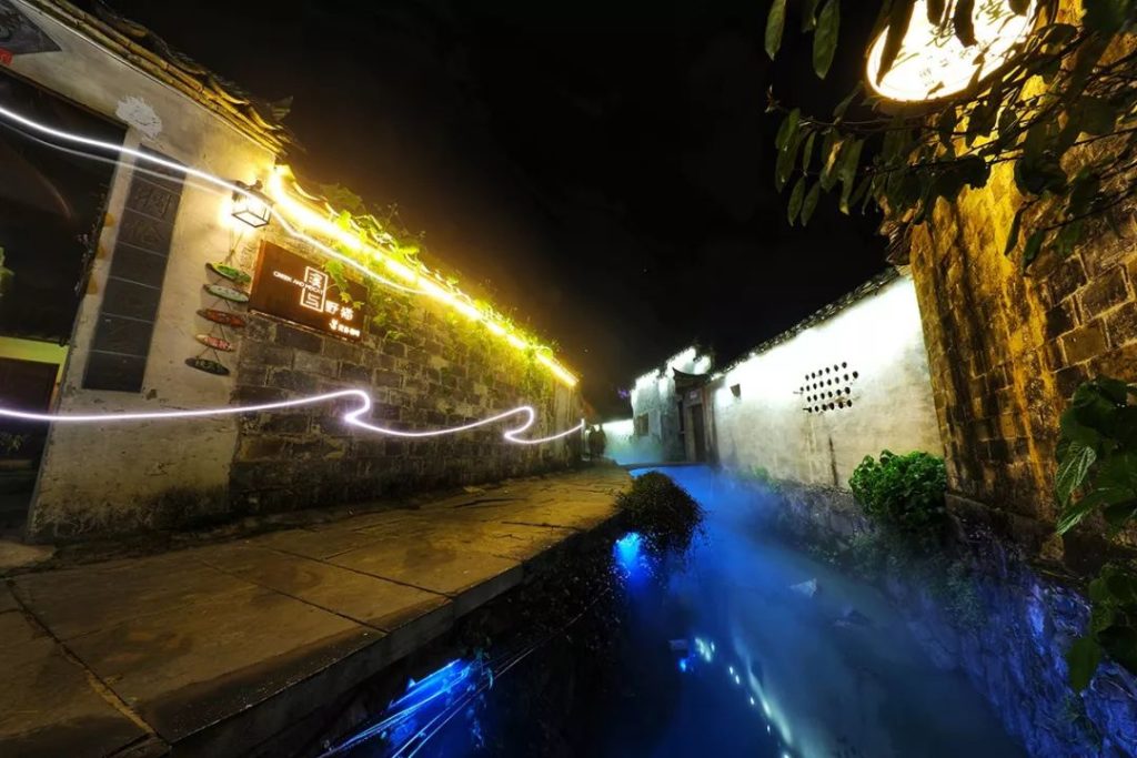 每当夜幕降临,一场大型行进式光影秀《西递传奇》即在西递古村落炫丽上演。