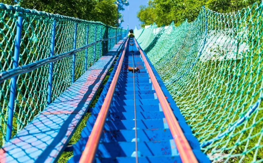 这里也是开心乐园一个充满欢乐与幻想的地方,疯狂刺激的管式滑道长度1100米,落差达82米,从山顶直冲山底,让你一啊到底。
