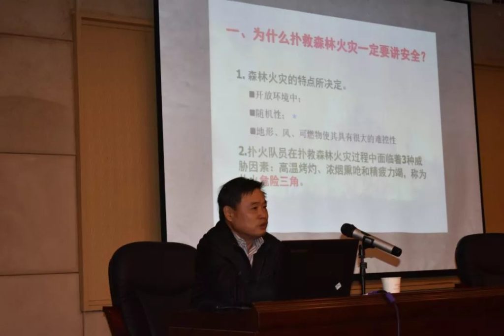 此次培训特邀请了信阳市应急管理局调查评估科的王清良科长和鸡公山国家级自然保护区管理局党组成员副局长陈锋为我们进行《安全生产双重预防体系创建与运行》及《安全扑救森林火灾的基本理论与技术要点》的相关培训。