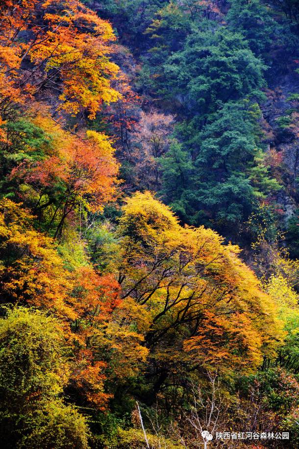 你知道吗?在巍峨的大秦岭北麓镶嵌着一个璀璨的明珠——红河谷。 红河谷位于陕西省眉县营头镇境内,系山岳型森林生态景区,有“秦岭神奇第一谷”和“陕西后花园”之美誉。 红河谷的魅力在山、在水,更在于每一个季节都有自己独特的美。不如一起去红河谷邂逅初冬时节不一样的风景吧! 追逐红河谷里最后一抹金黄,邂逅一段温暖的旅程。行走在初冬的红河谷,置身一个落叶纷飞的童话世界里,听风吹过耳畔,享受内心的片刻宁静。