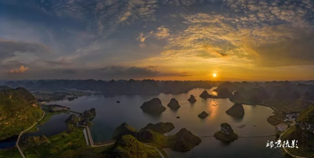 游览旧州古城及鹅泉景区后,就前往“大山里的海”——渠洋湖打卡,车程约22公里,游玩约120分钟;
