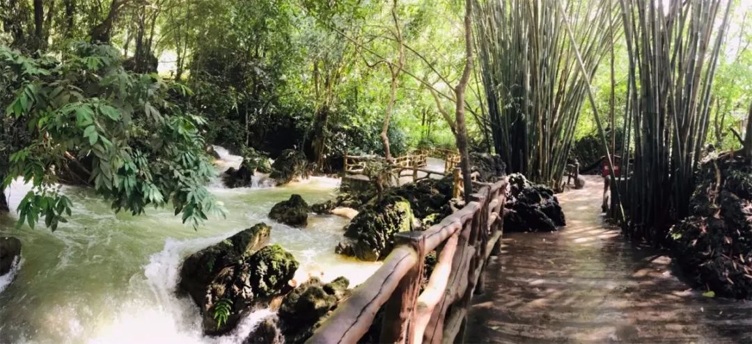 【鹅泉】又名“灵泉”,是中国西南三大名泉之一,鹅泉水从深达30多米的地下河涌出,四季不涸,水清如镜,是亚洲第一跨国大瀑布——德天瀑布的源头。