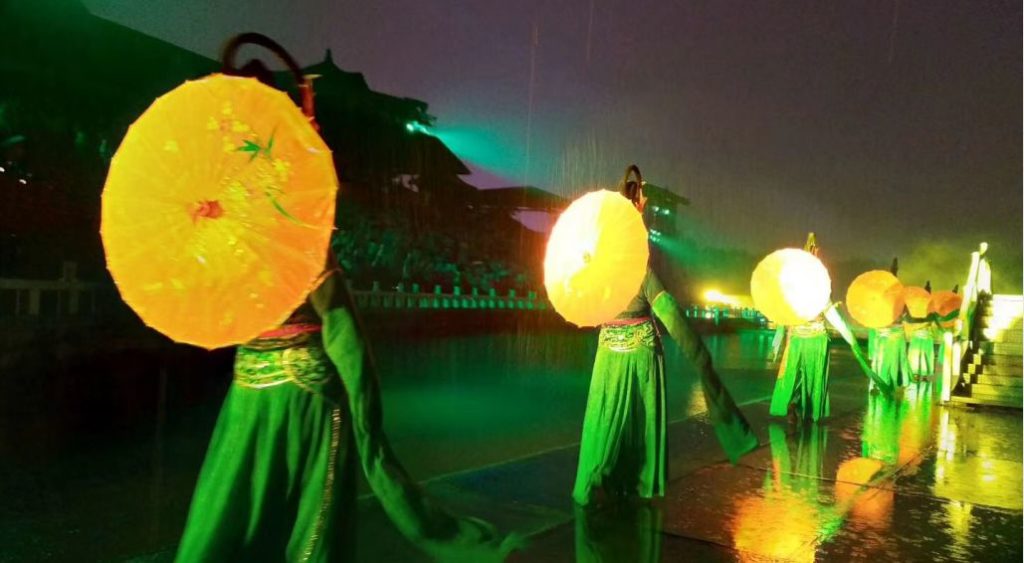 我们忘不了,那是一个大雨磅礴的晚上,我们接到了许多游客的电话,说他们从很远的地方来,说他们担心演出停演……当天晚上,我们给每位游客都提供了雨衣,看着穿着整整齐齐雨衣坐着观看演出的游客,我们觉得,你们怎么那么可爱。