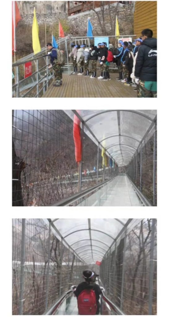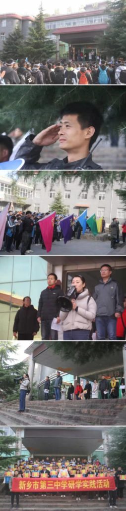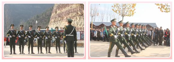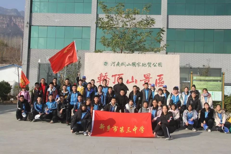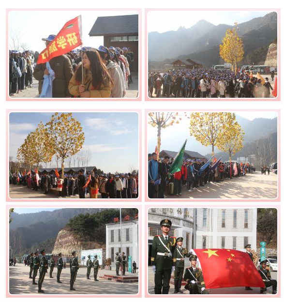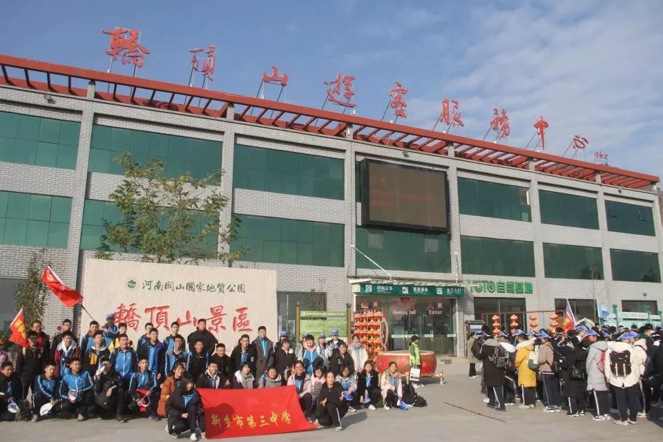【研学背景】目前,轿顶山研学基地以“以游促学”为核心目标,科学制订研学方案,细化研学线路,强化活动体验,做好研学文化体验的开发,建立起开放式、多元化的研学旅行体系,推动研学活动的多样化发展。轿顶山研学基地设计了包括地质研学、植物研学、历史研学、红色革命研学、星空研学,等主题的研学旅行课程。   2019年11月21日,轿顶山研学基地迎来了新乡市第三中学,开启的两日研学旅程。千人研学轿顶山井然有序。      第一站便是来到轿顶山红色抗战实物展览馆,参与升旗仪式,看到国旗护卫队擎着鲜艳的五星红旗,身着整齐的制服,迈着矫健的步伐,向旗台威严走去,接旗,转体,安旗,解旗,按钮,展旗,立正、敬礼,国旗伴着国歌冉冉升起。同学和老师分别向国旗宣誓:我爱我的祖国。