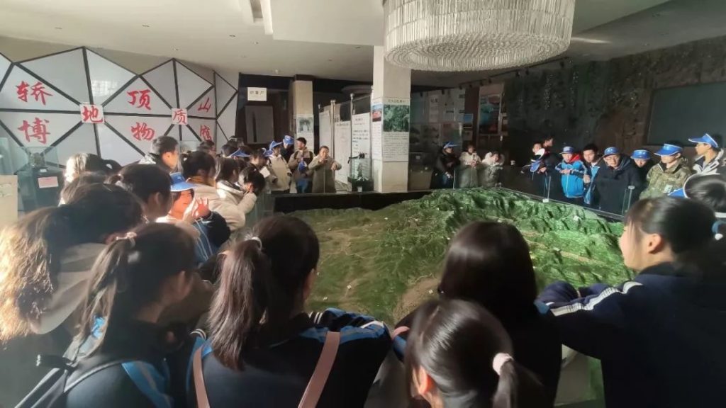 在地质博物馆内,通过研学导师对沙盘和地图的讲解,了解了轿顶山基地所在太行山的位置,及候兆川盆地、万仙山,王莽岭等具体位置。