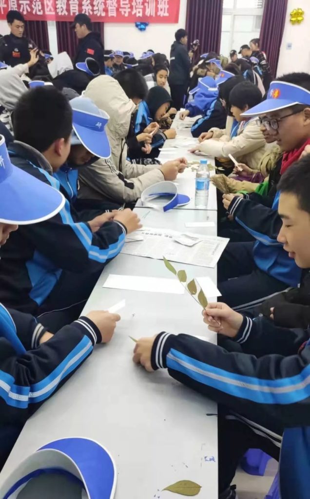 研学导师为同学们讲解植物的特征与属性,同学们认识了雪松,油松,连翘,侧柏,绣线菊,小叶梣等多种植物,并了解他们的作用与用处。