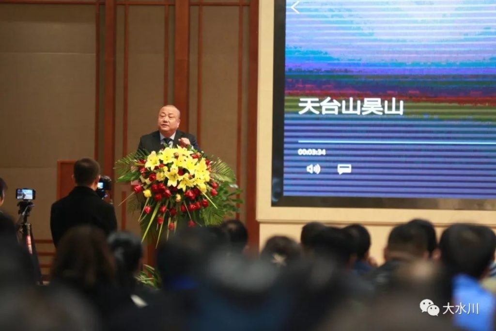 会上,育才集团党委书记、董事长史军辉做了重要讲话,并发布了由育才集团投资开发建设的天台山国家风景名胜区将于2020年建成运营,西镇吴山景区将于2020年全新打造。