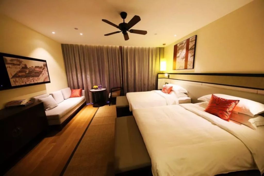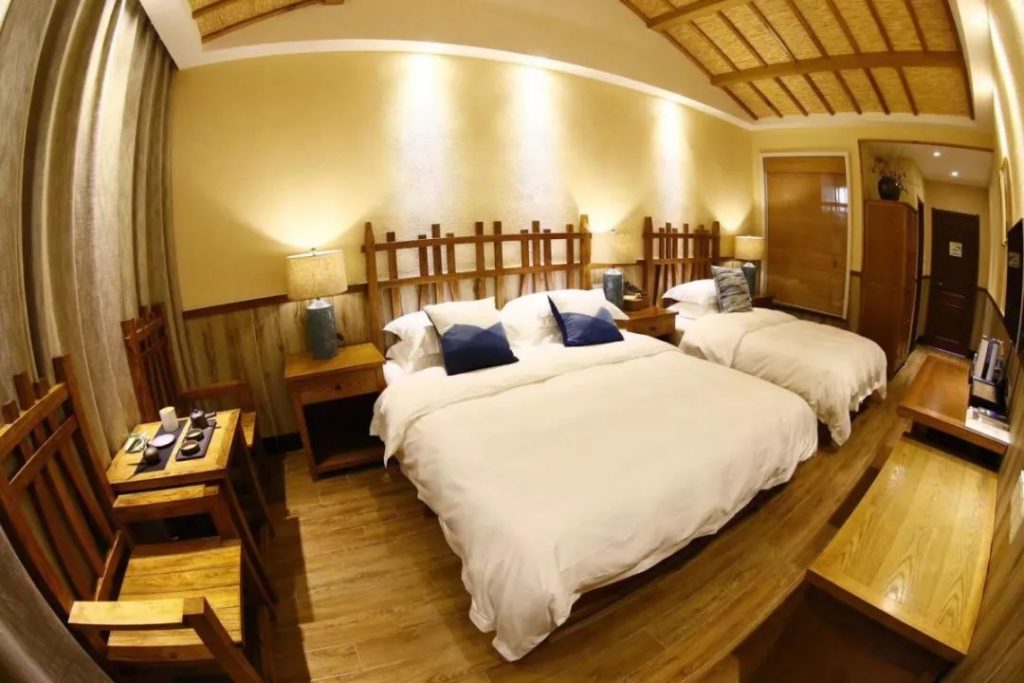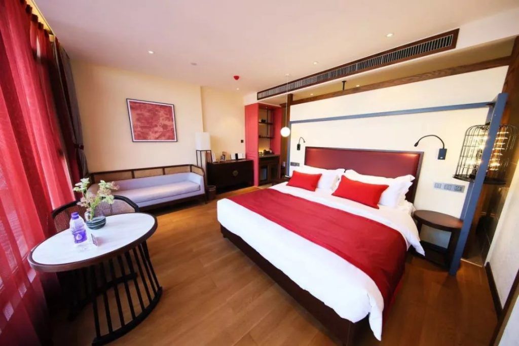 满庭芳精品客栈房间内设有落地大窗、智能化现代家具、手自一体播放机、智能TOTO马桶……一系列现代化设施确保朋友们住得舒心。
