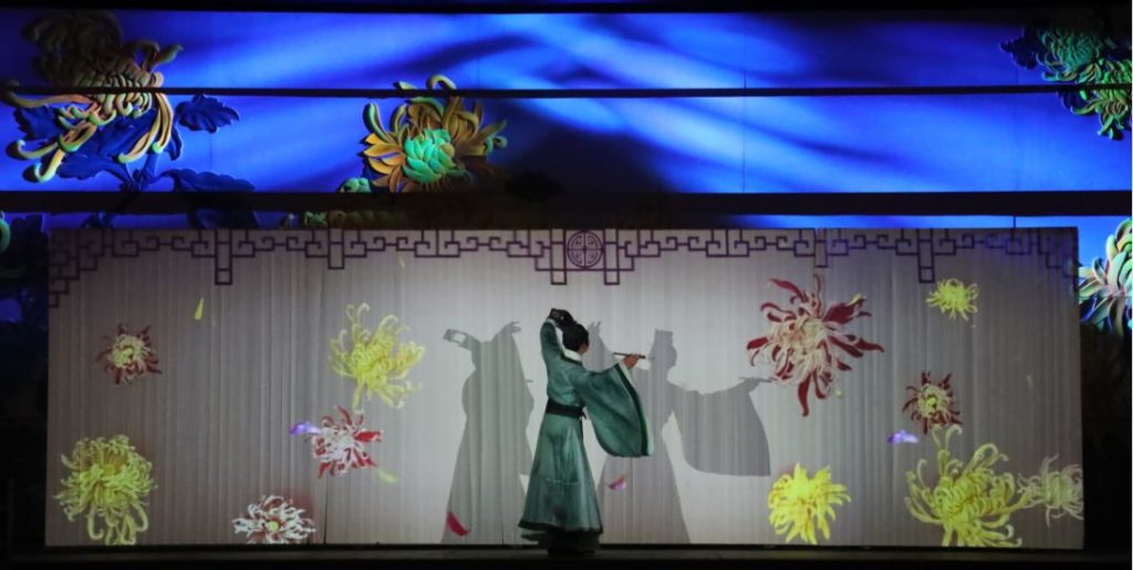 夜晚的第九个精彩,是菊花仙子的婀娜。《菊美人》的故事是从一个醉酒的书生邂逅菊花仙子开始讲起, 菊花如诗,美人如词,才子佳人的故事,从古至今,都总令人神往不已。