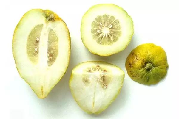 香橼被认为是这三元老中最年长的种类。不过,对于国人来说,这家伙多少有点陌生。因为它们的皮厚度通常会超过果实的一半,可食用部分太少了。虽然佛手——香橼的一个栽培变种——会长成小手的模样,偶尔出现在精致的果篮里面,但是这些东西从来就不会进入华夏老饕的法眼。