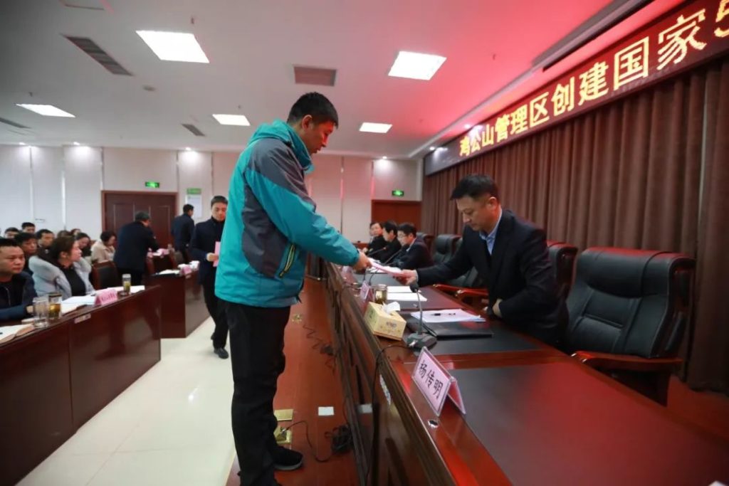随后,由鸡公山管理区党委副书记、纪委书记、创建国家AAAAA级旅游景区工作指挥部副指挥长杨传明传达《鸡公山景区5A创建考核奖惩办法》。