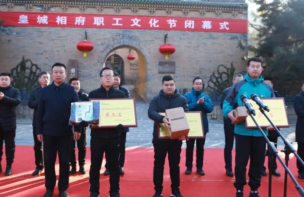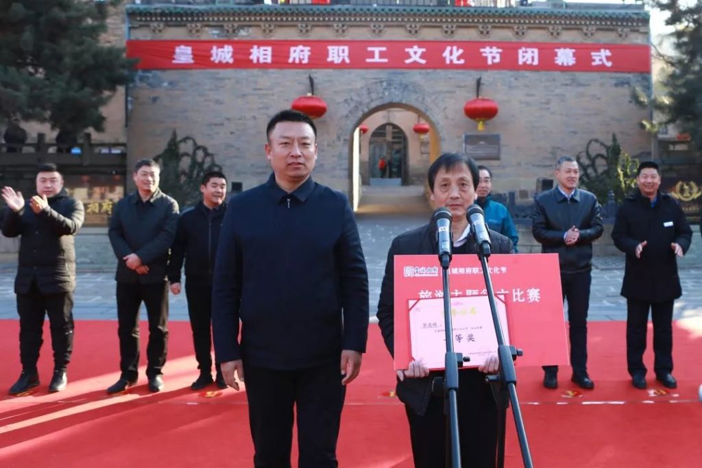 12月4日皇城相府生态文化旅游区职工文化节圆满落幕啦!本次活动从11月初开幕至今,历时一个月。本届职工文化节主题鲜明、形式创新,内容多彩,让广大职工在紧张的工作生活中,展现自己的亮点,丰富了业余生活。职工文化节共设置了15个比赛项目,316名职工参加,40人获得个人单项奖励,21人获得团体奖励。 出席本次职工文化节闭幕式的领导有皇城村党委副书记、皇城相府集团总经理樊进朝,皇城相府集团工会主席陈斗富,皇城相府文旅公司董事长王天亮,皇城相府文旅公司副总经理樊兵朝,皇城相府文旅公司工会主席陈鹏程,皇城相府景区经理王晓虎,相府庄园景区、相府庄园酒店经理赵鲲,九女仙湖景区经理陈新龙,蟒河景区经理陈军,游客服务中心经理裴进步,太岳干部学院经理袁宋兵,皇城相府文旅公司财务总监杨波,皇城相府宾馆贵宾楼经理张宏斌,蟒河山泉水厂经理郭二向,《再回相府》实景演出运营经理白旭环。 闭幕式上由皇城相府文旅公司董事长王天亮对本次活动进行了总结,皇城村党委副书记、皇城相府集团总经理樊进朝宣布皇城相府生态文化旅游区第二届职工文化节圆满闭幕! 为广大游客朋友和职工同志们献上了一场具有皇城特色的文化盛宴! 转载请注明来源:风光网视 » 皇城相府第二届职工文化节圆满落幕