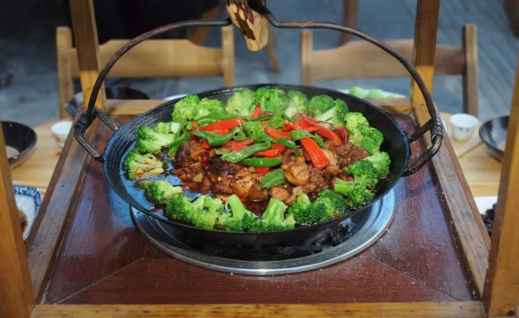 其次就是是“一锅煮”,主菜可以选择一种菜肴为主,或猪肉、或土鸡、或牛羊肉,再辅以木耳、干笋、野菜等等,主菜和辅菜强调了色、香、味、形和营养,搭配得“五彩缤纷”、赏心悦目;且除吊锅主菜外,四周还摆多碟小菜,以便下酒,小菜按系列陈放,有“绿源家珍”、“寿辉最爱”、“红军传统”、“刘安炼丹”等等,菜品种类很多,可根据需要点,再喝上一壶当地的小吊酒,在午夜时观看着漫天星点,静听落雪的声音,真乃人间享受。