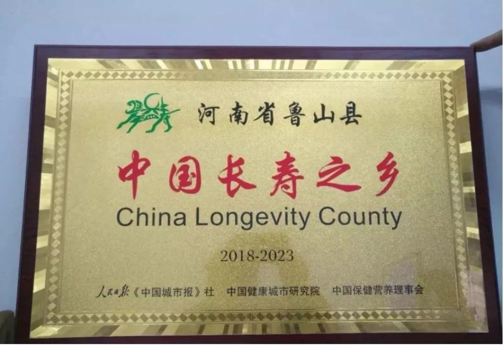 2018年12月28日,人民日报《中国城市报》社、中国保健营养理事会、中国健康城市研究院联合授予鲁山县 “中国长寿之乡”称号。