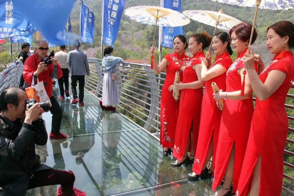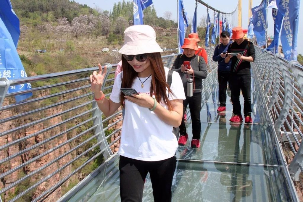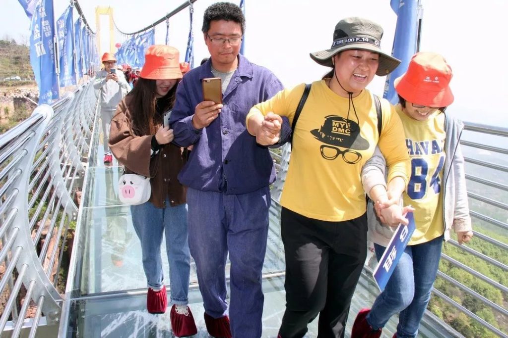 风和日丽之时,踏在玻璃桥上,峡谷裂隙奇景尽收眼底,行走其上仿如御风而行,惊险无比。
