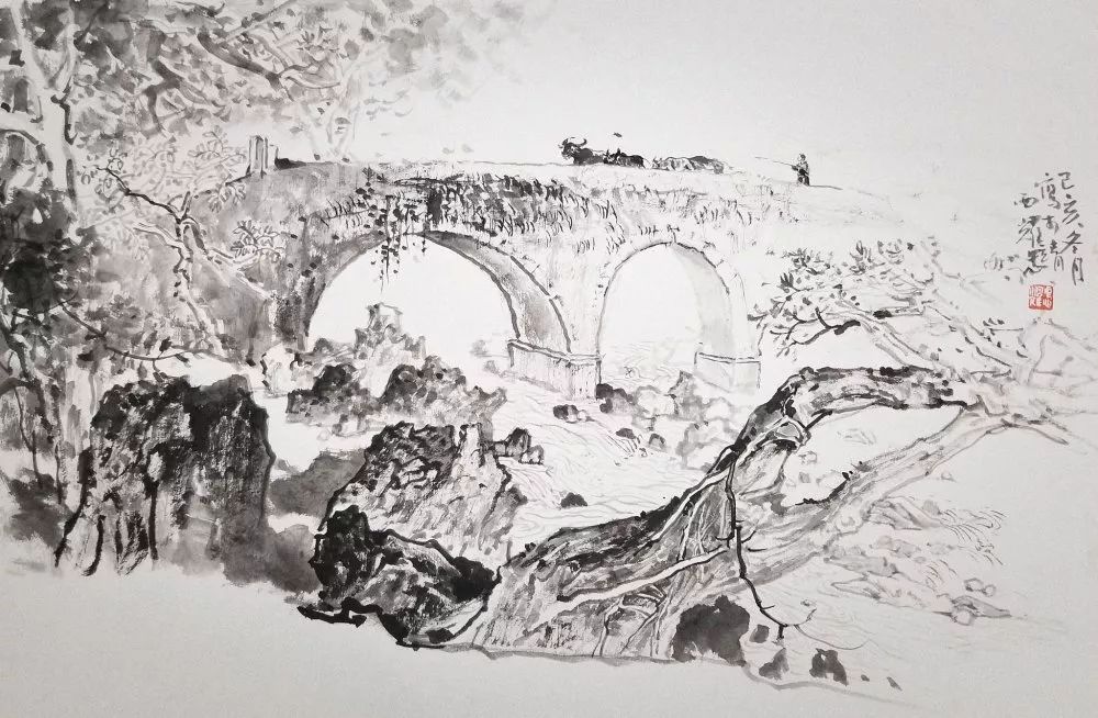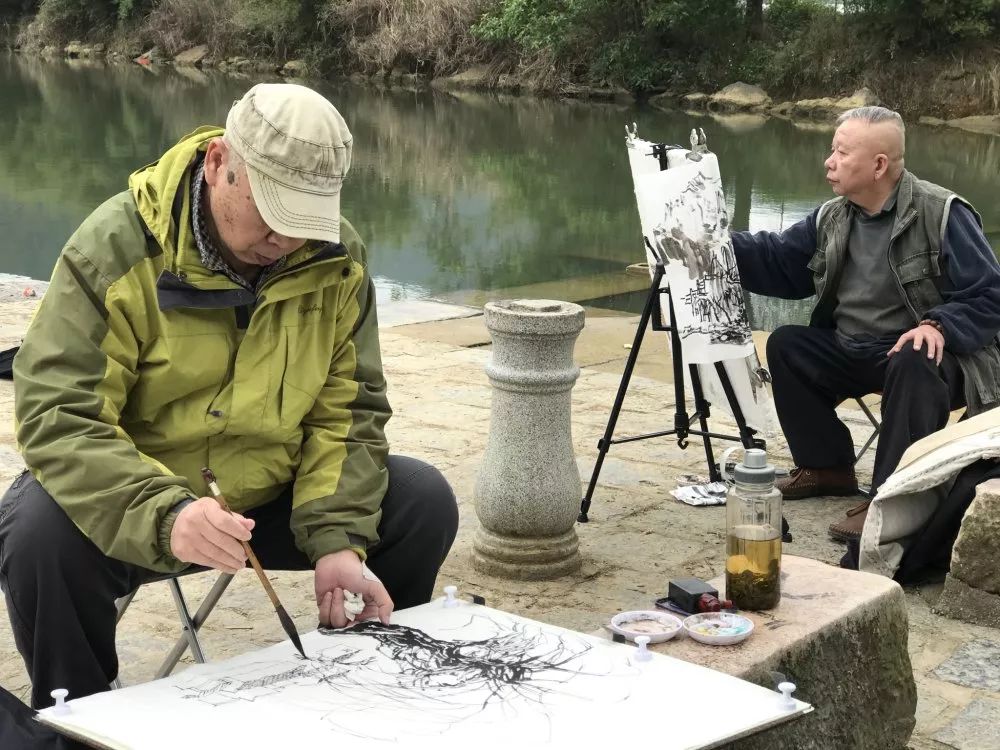 2019年11月29日清晨,那山那水画社的艺术家们,在旧州古城里哼着歌,漫步在溪河边的青石板路上。