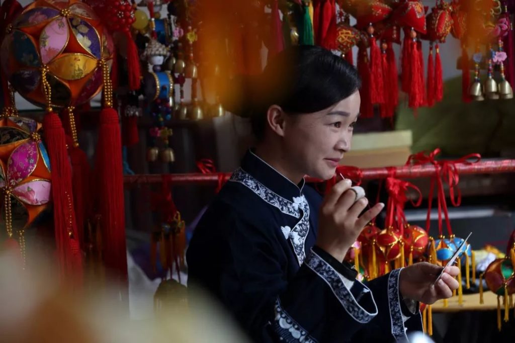 坐在家门前制作绣球的手艺人,针线在双手间不停的飞舞,将这个“广西符号”完整的传承下来。