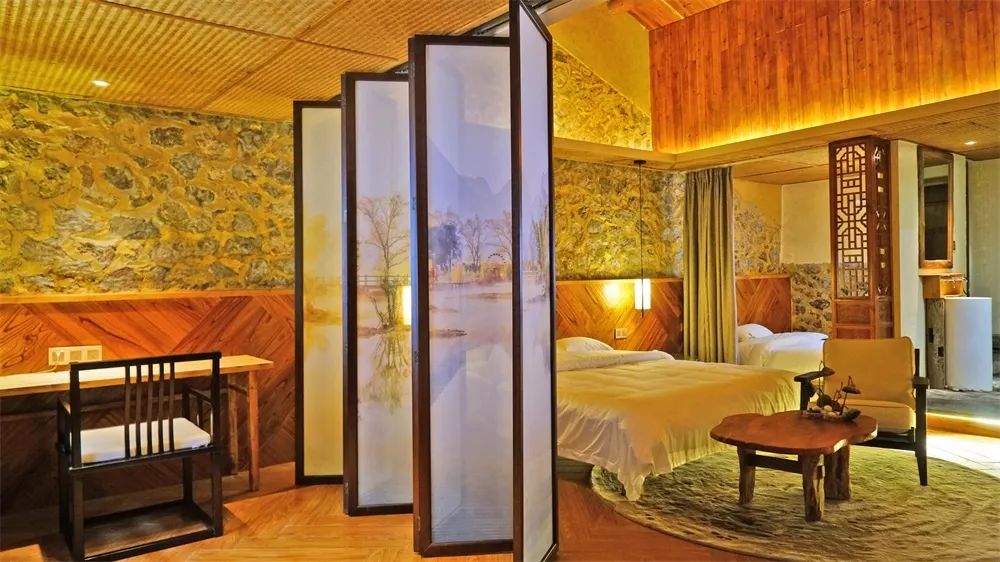 住在鹅泉民宿,感受壮族人民的建筑智慧。将岩石砌成墙,别出心裁的房间设计,以“山重水复疑无路,柳暗花明又一村”的豁然开朗带给入住者不一样的体验。