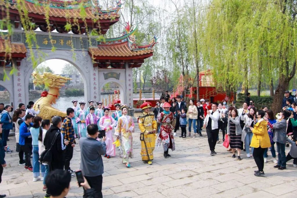 大型实景演出《乾隆巡游台儿庄》经久不衰,演员们从西门乘龙船出发,在天后宫小广场再现了当年乾隆亲赐“天下第一庄”时的盛况。为了欣赏到这精彩的演出,游人慕名而来,一睹曾经的辉煌。