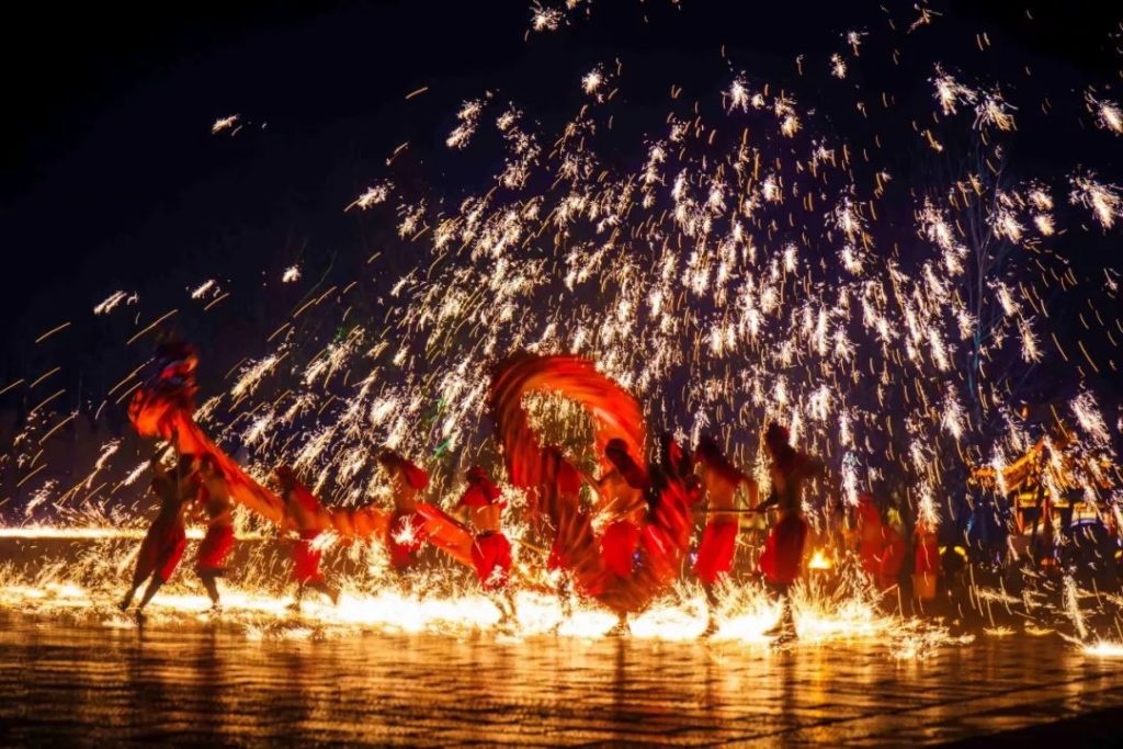 巨龙在火海中上下翻飞、来回穿梭形成了“龙在火中飞、人在火中舞”的震撼场景,让游客目不转睛,连呼过瘾。