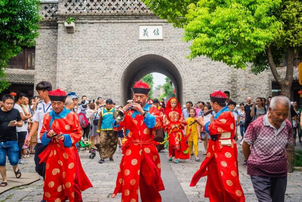 古城的箭道街市楼万家正在“广发喜糖”,周围的游客踊跃互动,热闹非凡。原来是万老爷府上有一千金,年芳二八,沉鱼落雁,闭月羞花,琴棋书画无一不通,知书达理,待字闺中,乾隆皇帝恩准抛绣球招亲。这便是集民俗、古装、游客体验于一体的《万家小姐抛绣球》演艺,它重现了古代抛绣球招亲的热闹场景。
