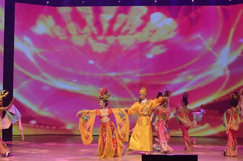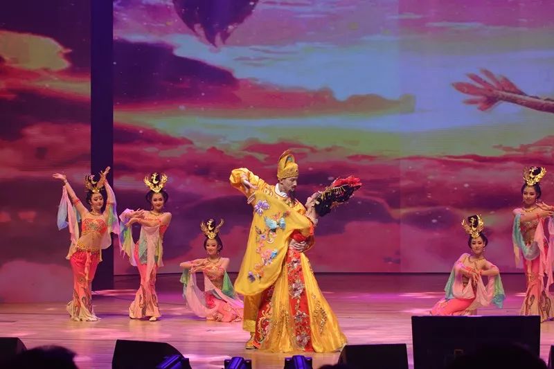 华清宫景区在闭幕式上表演了唐代著名舞蹈《霓裳羽衣舞》,以优美的舞蹈、华美的服饰和精美的背景,活化了唐玄宗李隆基所虚构的仙境、仙女,展现的中国特有的东方美、古典美、意境美,赢得了现场热烈的掌声。