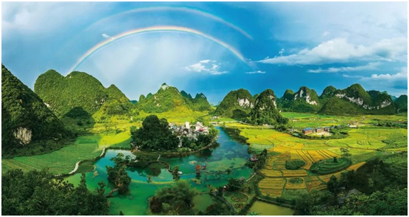 青峰林为幕,秀水为带,花海为席,文昌点睛,鹅泉如玉,宛若仙境,旧州古城,一眼千年!!!