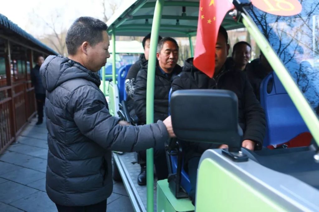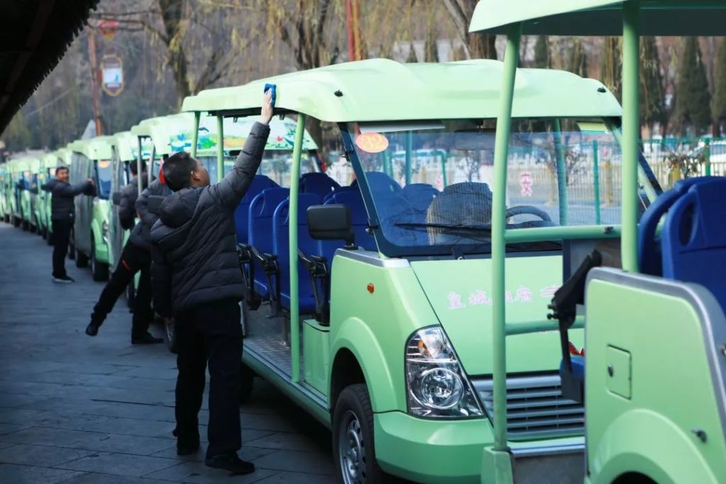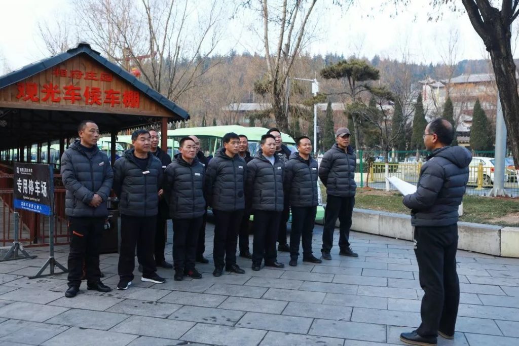 清晨,观光车的呼啸声叫醒了沉睡的朝阳,天还未亮,第一班的司机们就已经到岗,开始了一天的工作…… 他们每天穿梭在盘山公路上,载着游客到达每一个景点。他们心里牢记“标准化”,坚守“标准化”!在强化素质、注重质量,重抓内强素质、外塑形象方面,观光车队每次都走在前面。今天让我们走进相府庄园景区这支“标准化”车队的日常。 一年365天,他们时刻警醒,将标准化牢记于心,付诸行动。在每天的晨会中:“遵守交通法律法规,履行安全驾驶职责,严格遵守规章制度,确保车辆安全运行。”的宣誓不绝于耳。 安全就是使命和责任!发车前,对车辆进行全面检查,排查隐患,是每一个观光车司机的标准化动作。哪怕是一个细小的安全隐患都不会放过。 对观光车进行卫生清扫、技术保养是每一个观光车司机当天工作的第一道程序,为了给游客提供一个良好的乘车环境,他们每天都要对车辆进行全面清洁,每一个角落都不放过,时刻保持车辆卫生。 在工作中,他们精益求精,严格要求自己,开车时绝不压黄线,停车时必须整齐划一,收车时排成一条线,分毫不差。他们深知手握的是方向盘,关系的是千万家,无论何时、何地都保持着安全行车的高度警惕性。 相府庄园景区28位观光车司机肩负了多重角色,他们是“车神”、是安全员、是服务员、是保洁员、是救护员、是讲解员。拾金不昧,给游客提行李,帮助行动不便的游客上下车,为游客们擦拭板凳、拉上扶手链,安抚游客们坐好扶好……。他们时刻保持良好的精神面貌,优质的服务质量。 他们披星戴月,栉风沐雨,在平凡的岗位上,日复一日,年复一年