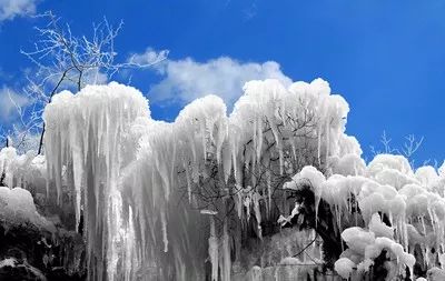 别的地方可能只有雪,但到了黛眉山这儿,就有了记录风的痕迹的冰挂,有浪漫的雾凇,有倾泻而下的冰瀑,有如同童话一般的冰雪王国乡,各种你没见过甚至没听过的雪景,每到冬天,都会如期而至。 夏季,声势浩大的瀑布,在冬的面前也变得乖巧了,水流变得缓慢,于是就算周围青色依在,也能让人感觉冬天的到来。 冬天的天路奇观,有时是寂静的,有时又热闹非凡。时而显得空旷悠远,时而又人来人往。 雪,冬季在北方绝不算罕见,但是雾凇奇观,恐怕是不多见的。雾凇既不是冰也不是雪,是可遇不可求的自然奇观。 冬天的黛眉山,水依旧绿,山依然青