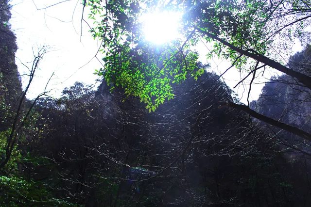 头顶险峰穿过黑龙峡,就到了山势稍开的养生谷。每走一段,就有股股溪流从山崖上猛摔而下,溅起一脸的春水。瀑布旁边,一群群接近透明的小鱼懒洋洋地游来游去。
