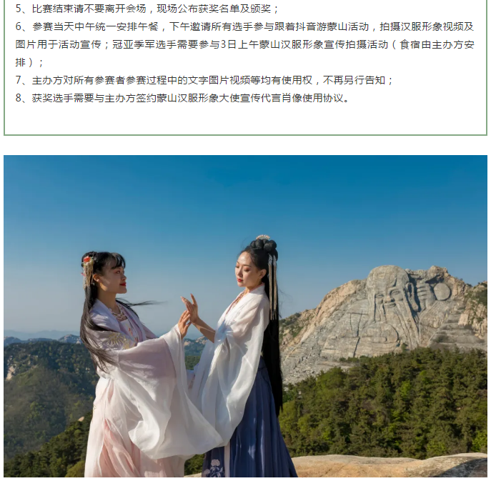转载请注明来源:风光网视 » 穿汉服免费游蒙山,赢千元现金大奖!